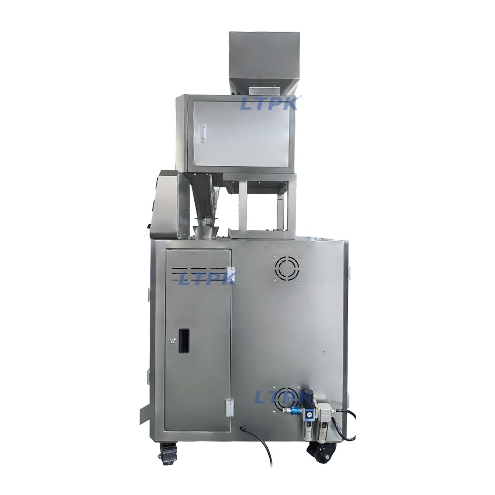 Ideal for measuring and packaging stir-fried goods, snacks, dried fruits and similar items, this automatic pouch sealer works at 10-20 bags/min, with max bag length 300mm and max bag width 200mm, saving labor and improving efficiency.