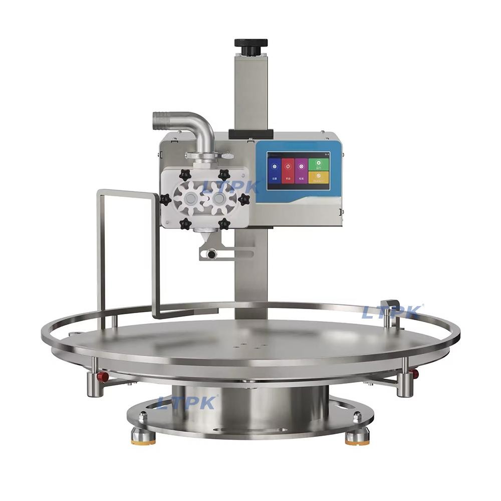 This filling machine uses a gear pump and is suitable for high viscosity liquids.It is equipped with an infrared sensing bottle system,the turntable and the filling machine work automatically in coordination,